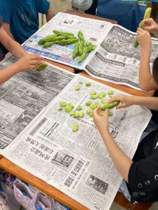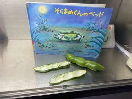 2年生とわかくさ学級で、そらまめの皮むきを行いました。