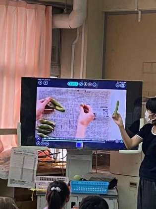 はじめに、栄養教諭の岩城先生による「そらまめのベッド」の絵本の読み聞かせ動画を視聴しました。