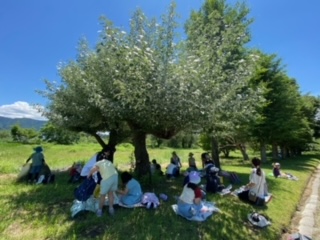 宿舎につきました。とってもいい天気です。富士山もきれいに見えます。これからお弁当です。