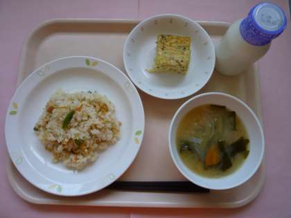 昨日(5/29)の給食の画像です。切干大根入りの卵焼きはボリューム