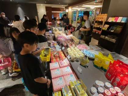 宿舎に着きました。開演式を行い、部屋でくつろいだ後、風呂&お土産タイムです。お土産選びはみんな真剣です。誰にあげるかを考えながら選ぶ姿が微笑ましいです。