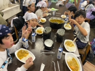ご飯はちょっと焦げた班もありましたが、おこげのおいしさを味わえたようです。