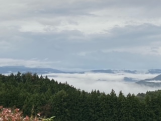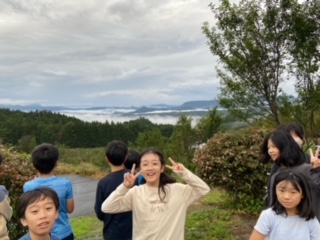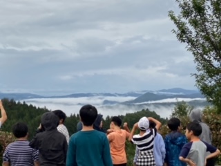 おはようございます。最終日です。朝会を行いました。今朝は宿舎から雲海が見えました。きれいです。子どもたちも喜んでいます。雨が少し降っていますが、今日もいい日になるでしょう。