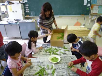 グリンピースは1年生が一生懸命さやからむいてくれました。どの