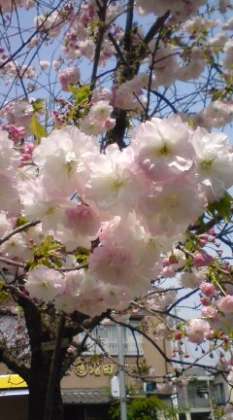 きのうは桜新町商店街のさくらまつりでした。天気は最高!並木の八重桜も見事です。