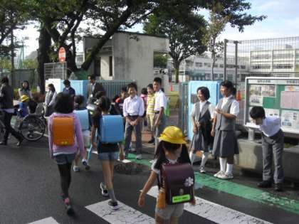 教職員も、通学路に立ち、朝の挨拶と登校指導を行いました。