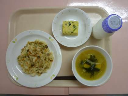 昨日(10/15)の給食の画像です。「きのこごはん」は甘めの味付けでしたが、よく食べてくれました。