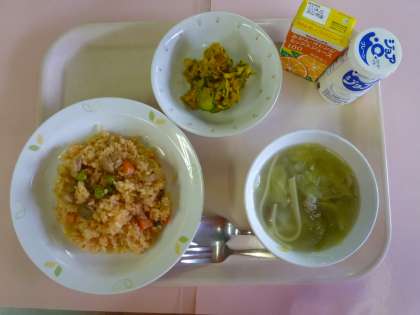 昨日(10/31)の給食の画像です。セレクト給食では、自分が選んだ飲み物を最後まで残して、大事そうに飲む児童が多かったです。
