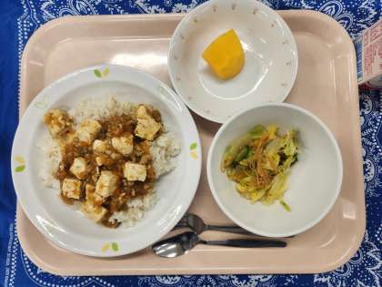 麻婆豆腐丼の麻婆豆腐は、豆板醬や甜麵醬を使って