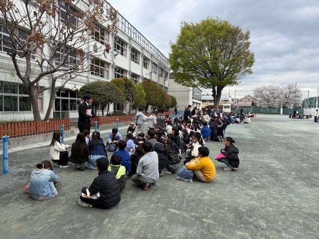 始業式では、校長先生より担任の紹介を行い、何かあれば担任の先生以外の先生も相談にのれるので安心して元気に過ごしていこうという話がありました。