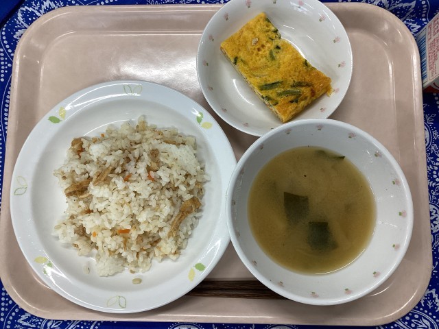 今週から1年生も給食が始まり、今日が初めて3食器を使う献立でした。