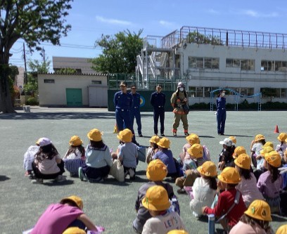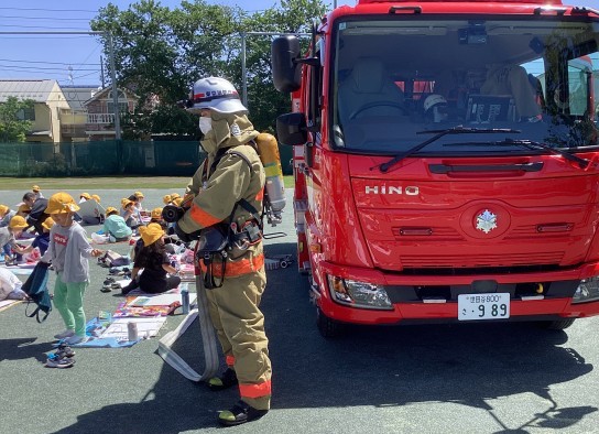 今日は消防士の方が写生会のために消防車と救急車を運転して来てくれました。