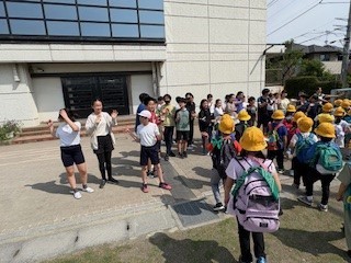 駒沢公園に行きます。出発の時、6年生が見送ってくれました。