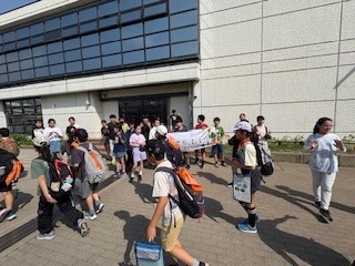 バスで葛西臨海水族園に行きます。今日もまた、6年生が元気に見送ってくれました。