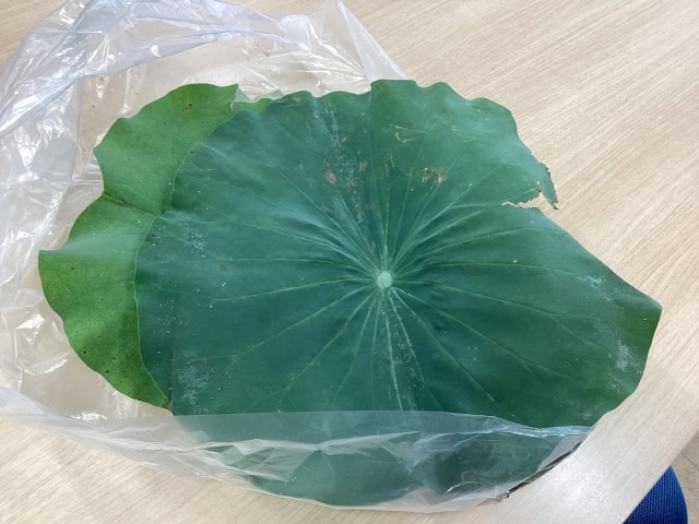 今日は、八百屋さんからおまけでレンコンの葉っぱが届きました。
