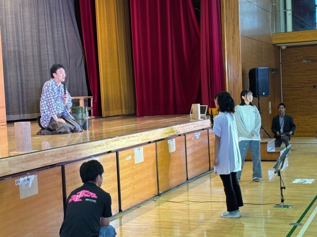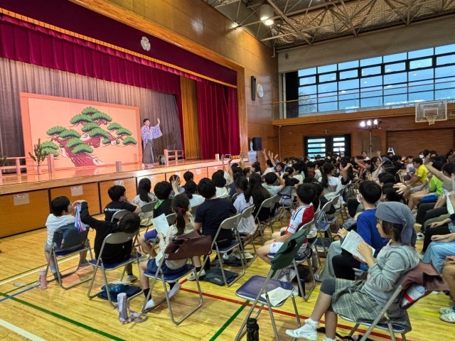 今日は古典芸能鑑賞教室が深沢小学校の6年生と合同で行われました。狂言の「附子」という曲目を観たり、泣きかたやセリフのイントネーションを意識した発声を体験したりすることで、子どもたちは狂言の世界に引き込まれていました。初めに比べて印象が変化し、狂言の面白さに気づく素敵な時間になりました。