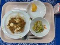 麻婆豆腐丼辣白菜くだもの(柿)牛乳今日の麻婆豆腐のレシピを教えてください!と3年...