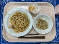 焼きうどんごま酢かけかぼちゃマフィン牛乳今日はかぼちゃマフィンのレシピを4年生か...