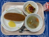 コッペパンりんごジャムほうれん草のオムレツきのこのABCスープ牛乳今日のスープに...