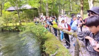 さかなと森の観察園です。様々な魚がいる池を回ってエサをあげることができます。清流...