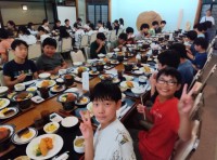 開園式を終えて、入浴。そして待ちに待った夕食です。おかわりする子どももたくさんい...