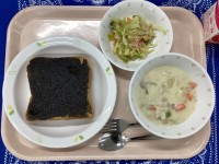 くろくろトーストクリームシチューツナサラダ今日は、黒胡麻と黒蜜を使った真っ黒な「...