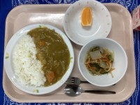 ポークカレーライスこんにゃくサラダくだもの(清見)牛乳さすがカレーは大人気で、い...