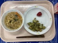 みそラーメン青のりポテトくだもの(いちご)牛乳今日の給食を楽しみにしていた子が多...