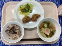 赤飯鶏のからあげ即席漬お祝いすまし汁牛乳今日で今年度の給食が最後でした。最後は修...