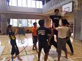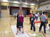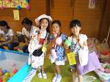 体育館では、竹とんぼ、草笛、ヨーヨー釣りが行われました。竹とんぼは、手をすり合...