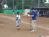 校庭では、桜町SC主催のキックターゲット、おやじの会主催のソースせんべい、かき氷...