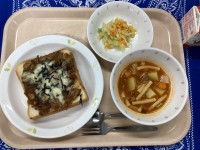 照り焼きチキンピザトーストコーンサラダミネストローネ牛乳先週のトマトシチューも人...
