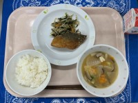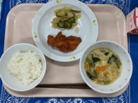ごはんさばの竜田揚げ野菜ののり和え利休汁牛乳今日はさばを竜田揚げにしました。煮る...