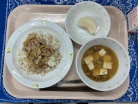 しょうが焼き丼なめこのみそ汁くだもの(梨)今日は、今年度初めての梨でした。みんな...