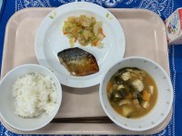 ごはんさばのみりん焼き白菜のピリピリ漬けじゃがいものみそ汁牛乳今日の白菜のピリピ...