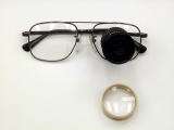 卒業を間近に控えた雨の降る寒い日、目の教室で先生と私はレンズと格闘していました。 あのレンズにこのアタッチメントをくっつけてみたり、また他のものと取り替えてみたり・・・。その時に誕生した眼鏡がこれです。これは今でも私の生命線で、大学でもこれ一つですべてこなしています。眼鏡のフレームに4倍の単眼鏡が取り付けてあり、それにニコンの弱視眼鏡の3倍のアタッチメントがついています。いろいろやってみた結果、どうもこれが一番良いということになりました。アタッチメントを外すと黒板を見ることが出来、付けるとノートを見ることが出来ます。また、ピントの合わせ方によって楽譜を離して見る事が出来るので、ピアノやその他の楽器での初見が利くようになるのです。これは私にとってとても大きなことでした。目の教室での訓練はこの日で終わりでした。でもそれからは、毎日が私にとって訓練でした。