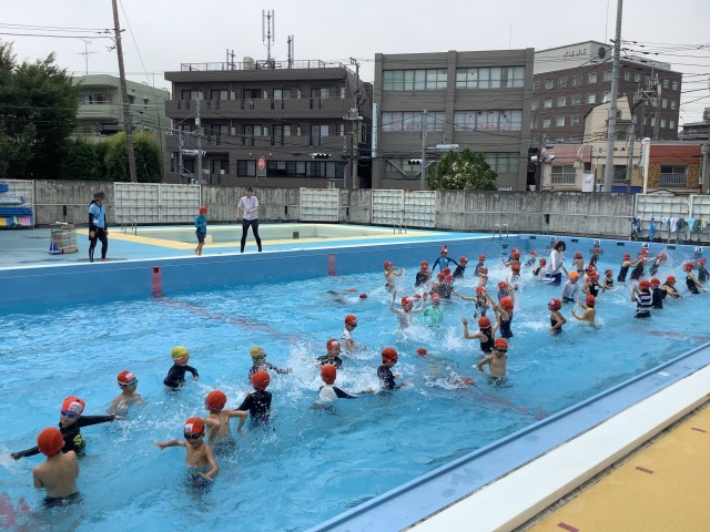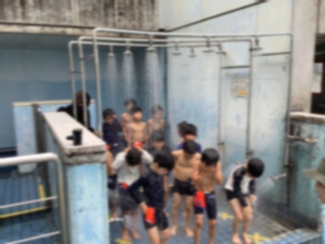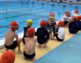 最初は広いプールに驚いて大騒ぎしていましたが、小学校の水泳学習のルールを知り、楽しく安全に学習するためには落ち着いて行動することが大切だと気付くことができました。