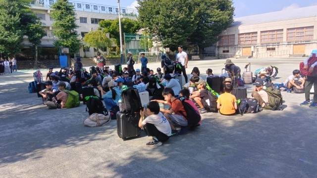心配していた台風9号の影響もなく、とてもよい天気のもと出発の朝を迎えることができました。当日の欠席もなく、参加予定の子どもたち全員が元気に集合し、8時05分から出発式を行いました。子どもたちが考えた、日光林間学園のスローガンは「歴史に残る2025 仲良く楽しい 笑顔モリモリの思い出」です。スローガン通りの楽しい林間学園になるよう、全員で頑張りたいと思います。予定通り8時30分、バスは出発しました。お見送りに来てくださった保護者の皆様、休日の朝早くからありがとうございました。