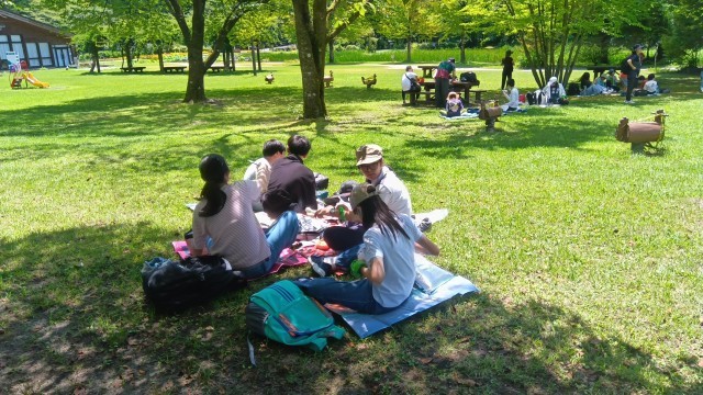 東北道順調に走行し、予定より10分早く11時20分に日光だいや川公園に到着しました。広々とした芝生に多くの木々が影を作ってくれています。そんな日陰に子どもたちは思い思いにシートを広げて、お弁当をいただきました。保護者の皆様、朝早くからお弁当のご準備ありがとうございました。