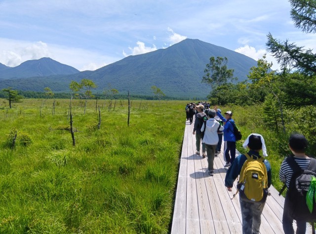 午前9時、湯元の宿舎からハイキングをスタートしました。近くの湯の湖で学年写真を撮り、まずは湯滝を目指しました。湯滝を見た後は泉門池、青木橋を経由し、戦場ヶ原を赤沼茶屋まで歩きました。途中、木道から男体山が綺麗に見えました。ハイキングでは、後ろを歩いたクラスが、遅れることなくピタリと前のクラスに追従して、去年の川場移動教室とは見違えるほどの歩きぶりでした。赤沼茶屋12時到着の予定でしたが、なんと40分も早くゴールできました。全員で完歩できたのが、良かったです。みんな元気です。