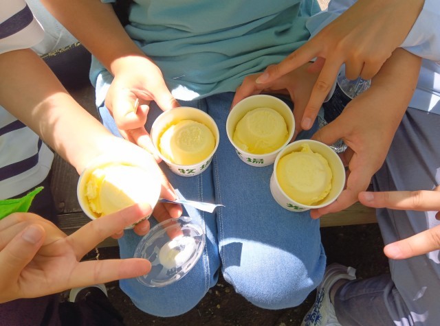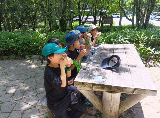 13時00分、昼食後、光徳牧場にバスで移動してお楽しみのアイスクリームをいただきました。ハイキングで疲れた体に、濃厚なバニラアイスが染み入り、みんな大満足でした。