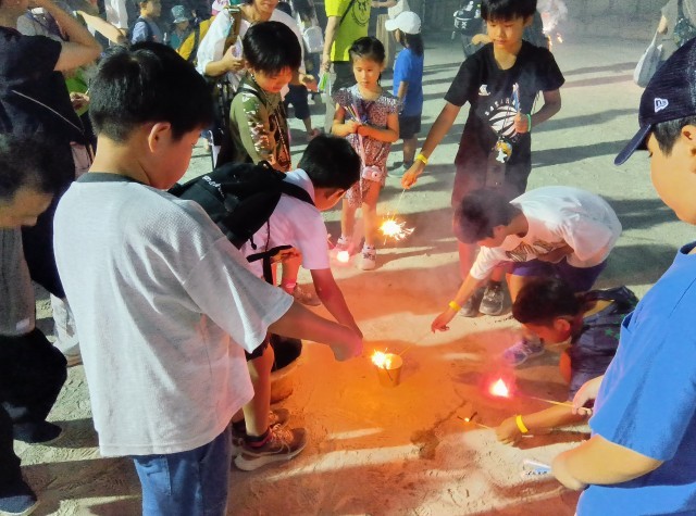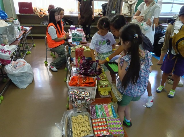 夏休み最後の土曜日となった8月30日、PTA主催による子ども縁日が体育館と校舎内で開かれました。子ども縁日は、子どもたちが2学期に安心して楽しく学校に通えるようにとの願いを込めて、毎年夏休みの最後の土曜日に開催されています。当日は、おやじの会、学童クラブ・新BOP、総合型スポーツ文化クラブ、世田谷消防団第16分団の皆さんにもご協力いただき、ヨーヨー釣りやスーパーボールすくい、ボール投げ、光るスライム、工作、プログラミングなど、多彩な遊びのコーナーや、焼きそば、綿あめ、フランクフルト、ポップコーン、駄菓子屋さんなど、おいしい食べ物を販売するお店が出店しました。たくさんの親子が夏休み最後の夏休みに学校に集い、会場は笑顔と歓声に包まれました。さらに、ギタークラブによる演奏会や様々な景品が当たるお楽しみ抽選会も行われ、大いに盛り上がりました。縁日の最後には校庭で花火大会が開かれ、夜空にきれいな光が広がると、子どもたちから大きな歓声があがりました。夏の終わりを飾る賑やかなひとときとなり、地域・家庭・学校が力を合わせてつくりあげたこの一日は、子どもたちの心にいつまでも残る大切な思い出となりました。ご協力いただいた、全ての関係者の皆様に感謝申し上げます。