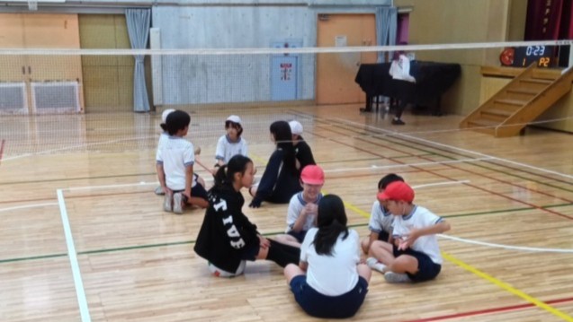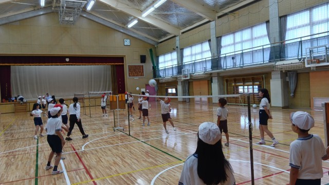 5年生 体育「キャッチバレーボール」の授業の様子です。
