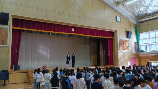 また、日に日に寒くなってきているからか、「ポケットに手を入れる」「フードを被っている」児童が見られること、ポケットに手を入れるのではなく、手袋をつけるなど、安全に過ごせるようにしましょうというお話がありました。