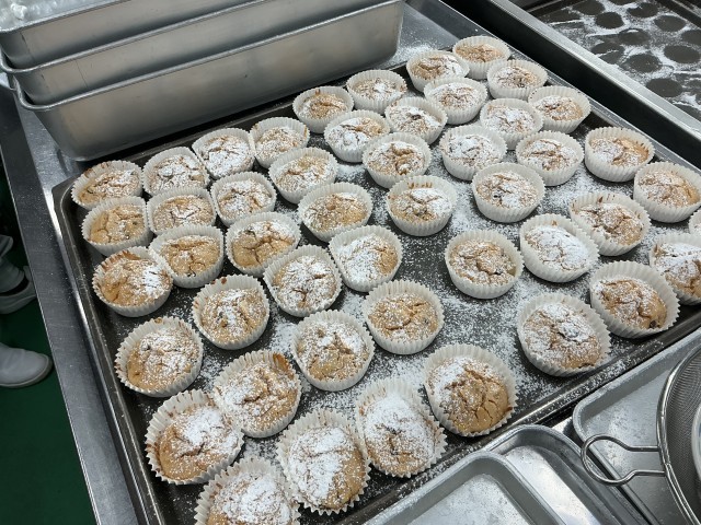 今日は、パエリア、ポトフ、シュトーレン風ケーキ、牛乳です。
