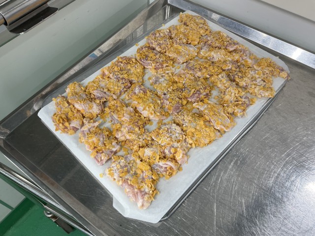 クリスピーチキンには、コーンフレークを衣に使っています。