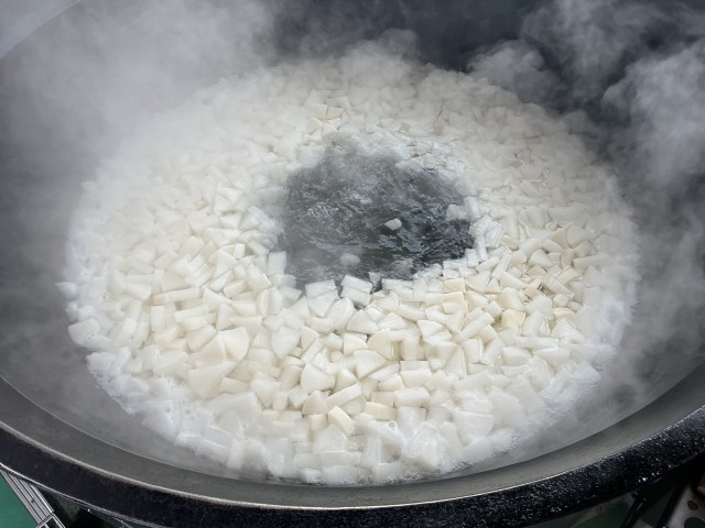 今日は目の教室のみなさんが収穫してきてくれた大蔵大根を使いました。