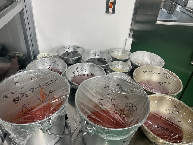 写真はカレーライスに入る調味料の一部です。材料ごとに計量しボウルに入れてわかりやすくしておきます。