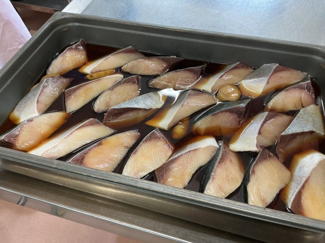 今日は、有機米ごはん、魚の煮つけ、辣白菜、呉汁、牛乳です。