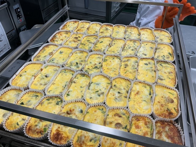今日は、あしたばパン、チーズオムレツ、白いんげん豆の田舎風スープ、牛乳です。